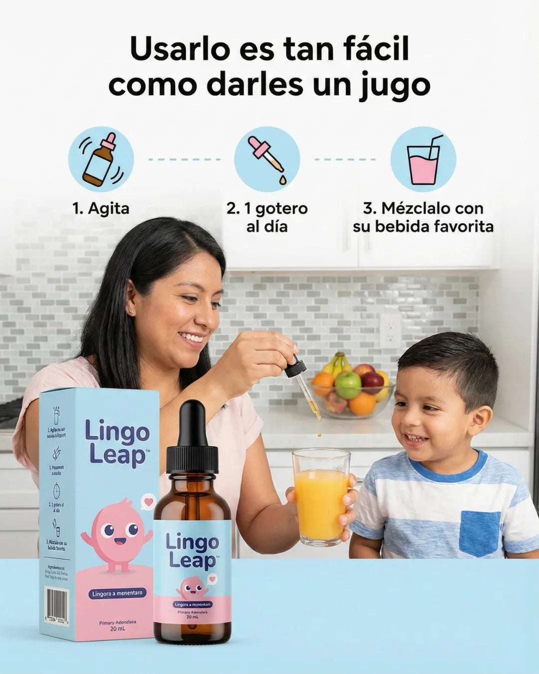 - Puedes mezclarlo con agua, jugo natural o cualquier bebida que tu hijo prefiera