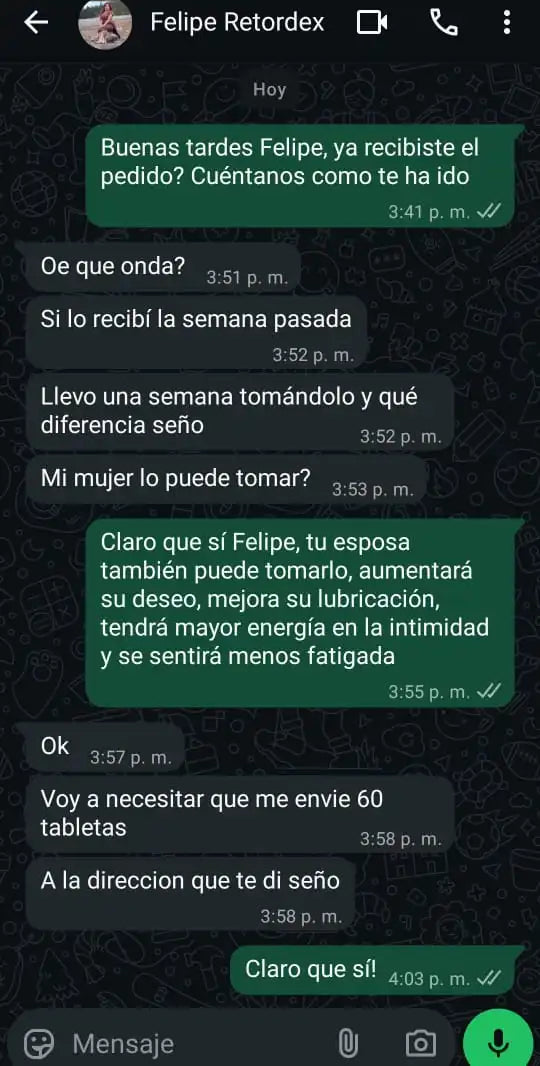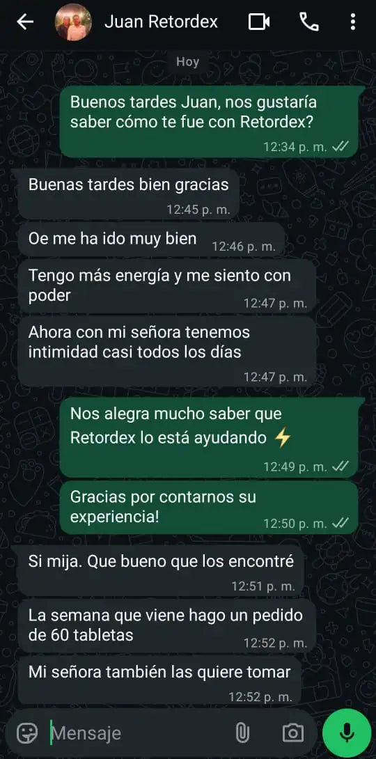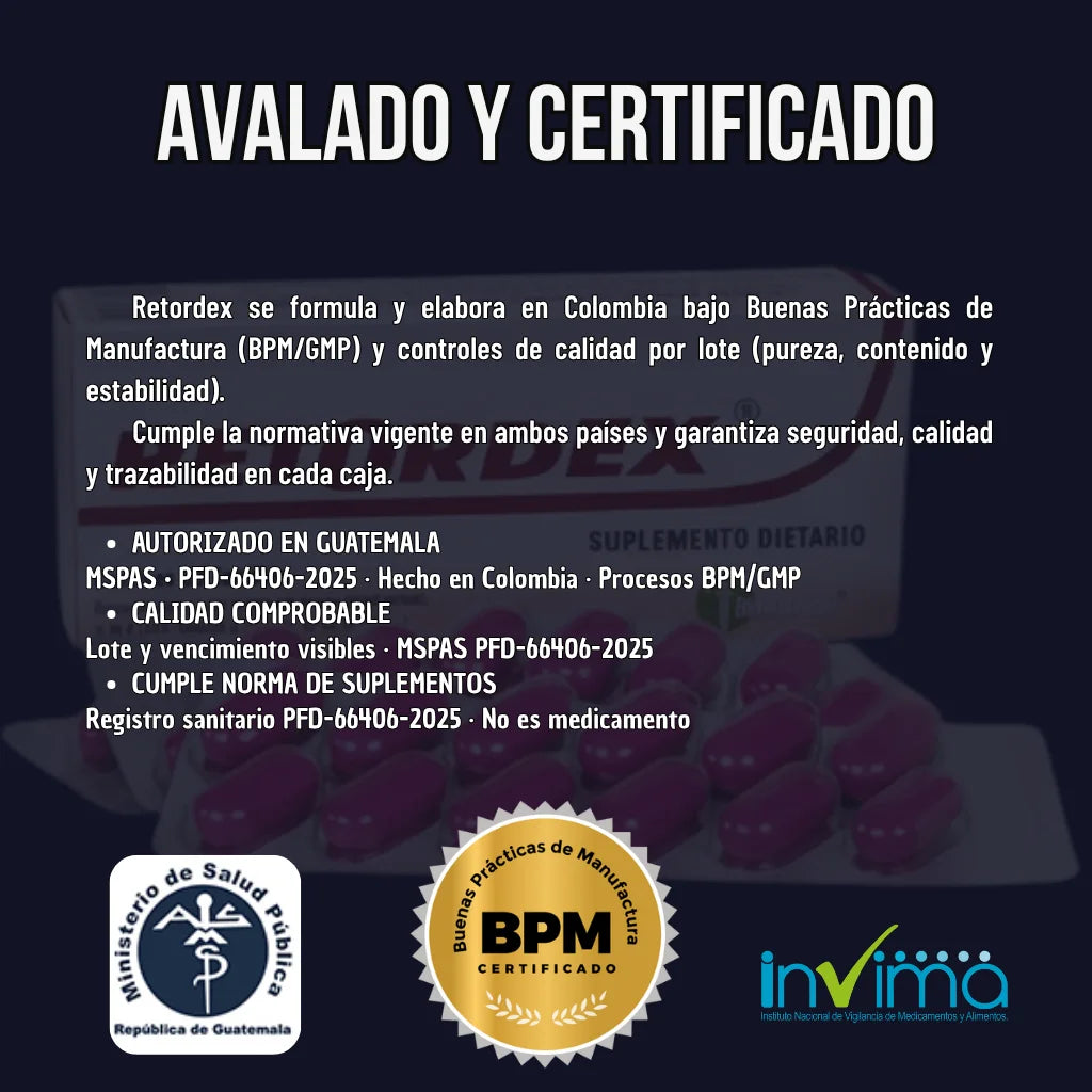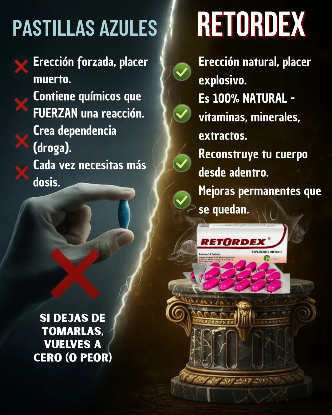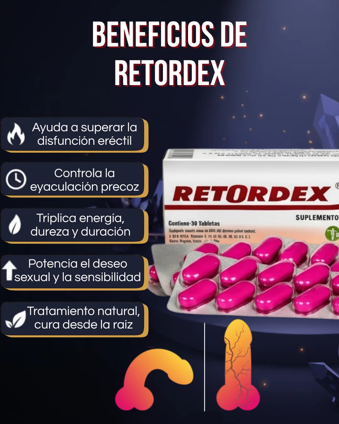 RETORDEX Es 100% natural está hecho con vitaminas y extractos naturales. No es sildenafil, no son químicos raros.